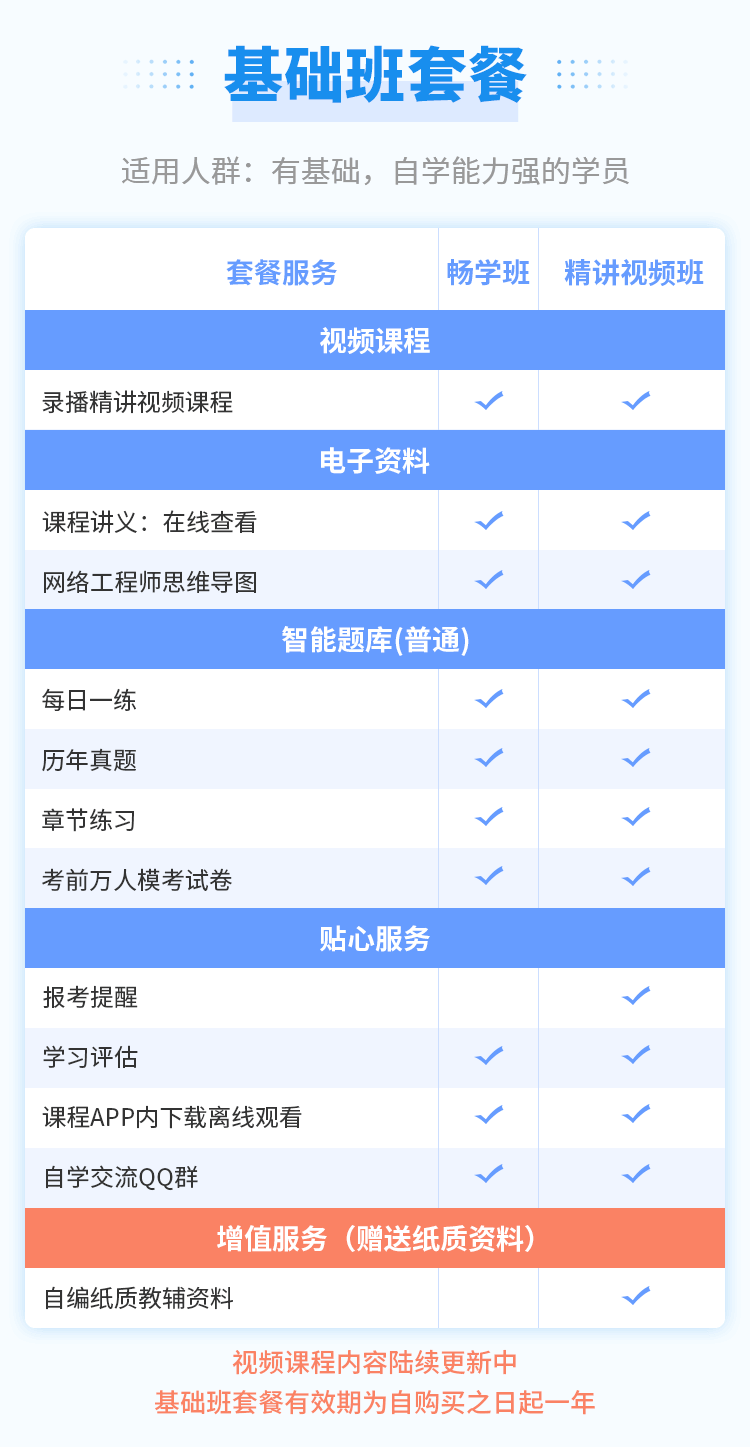 包含精講視頻課程、紙質(zhì)內(nèi)部輔導資料、智能題庫隨時刷題、考前模擬試卷、電子資料輔助學習等。